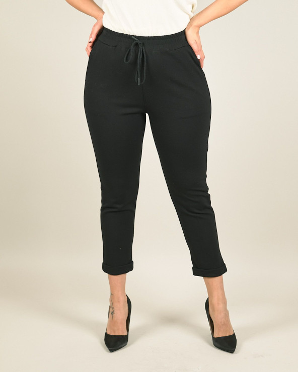 Pantaloni in punto milano con risvolto e laccetto