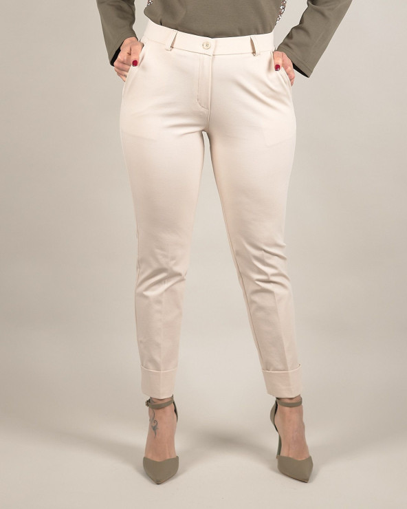 Pantaloni beige con risvolto in punto milano