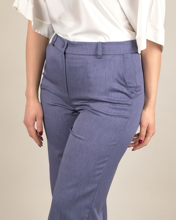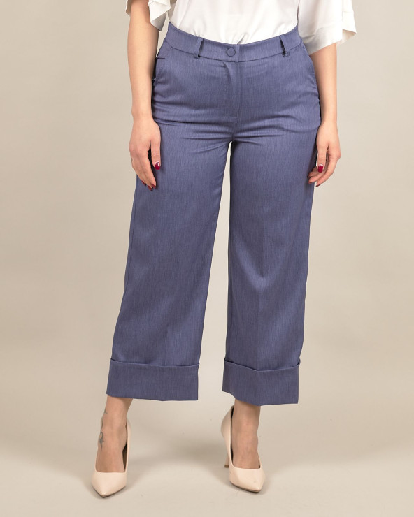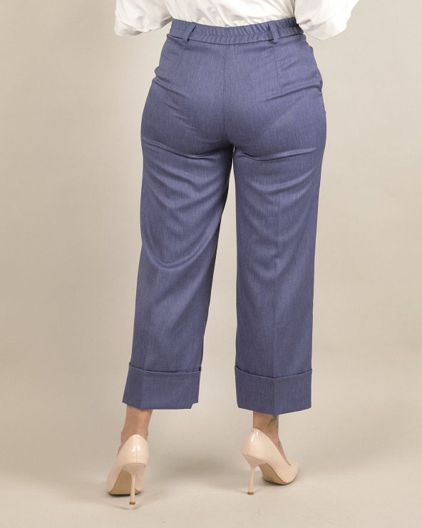 Pantaloni cropped in chambray con risvolto
