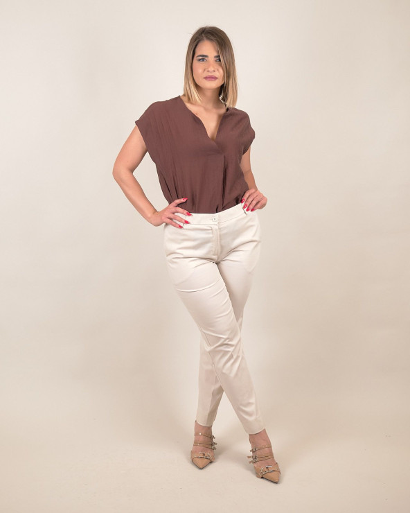 Il colore neutro li rende estremamente versatili: da abbinare a bluse fluide per l’ufficio, oppure a t-shirt per un’uscita informale. Un capo essenziale per costruire outfit raffinati ma pratici, perfetti da mattina a sera.