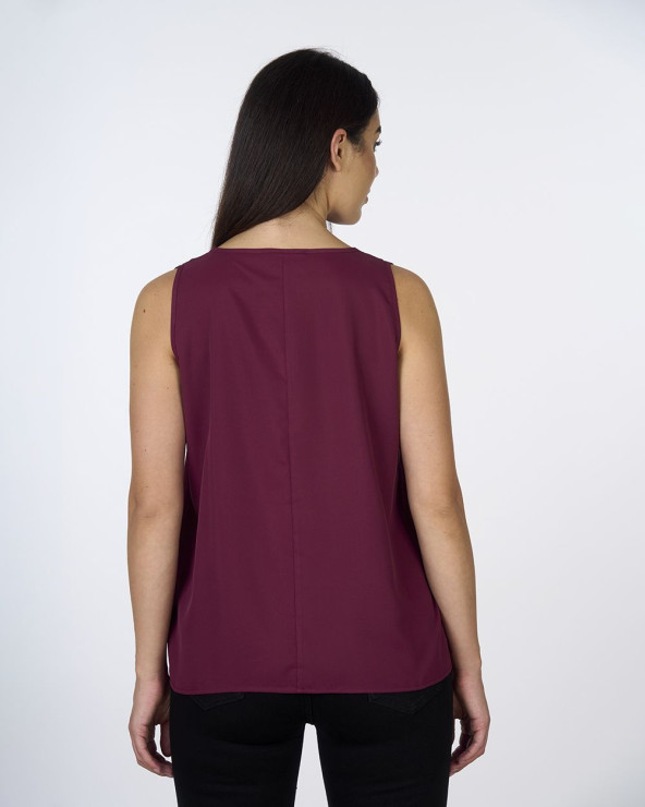 Questo top smanicato con scollo a V arricchito da delicati inserti in pizzo è il capo ideale per un look femminile e sofisticato. La linea morbida e leggermente svasata garantisce una vestibilità confortevole, valorizzando le forme senza segnare la silhouette.